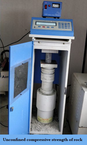 Unconfined Compressive Streght:The unconfined compressive strength (UCS) is the maximum axial compressive stress that a right-cylindrical sample of material can withstand under unconfined conditions.